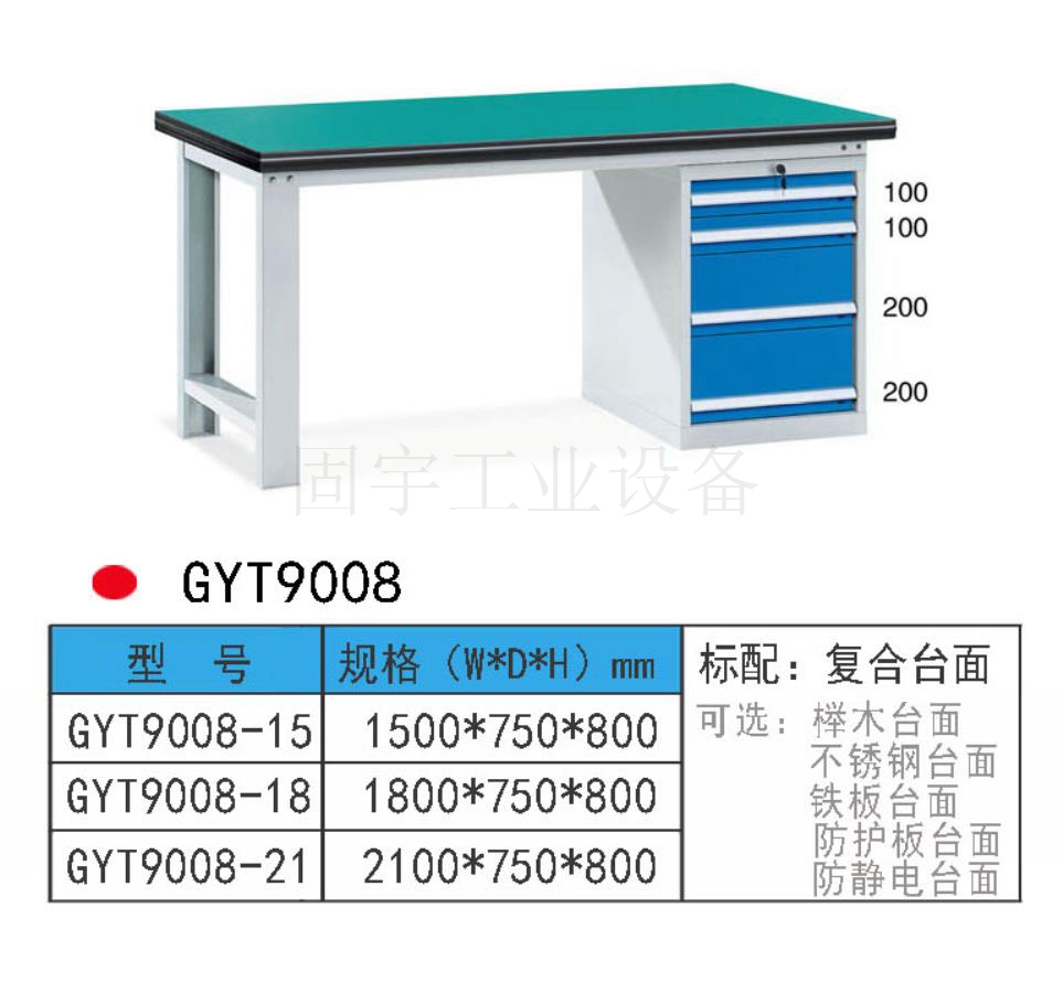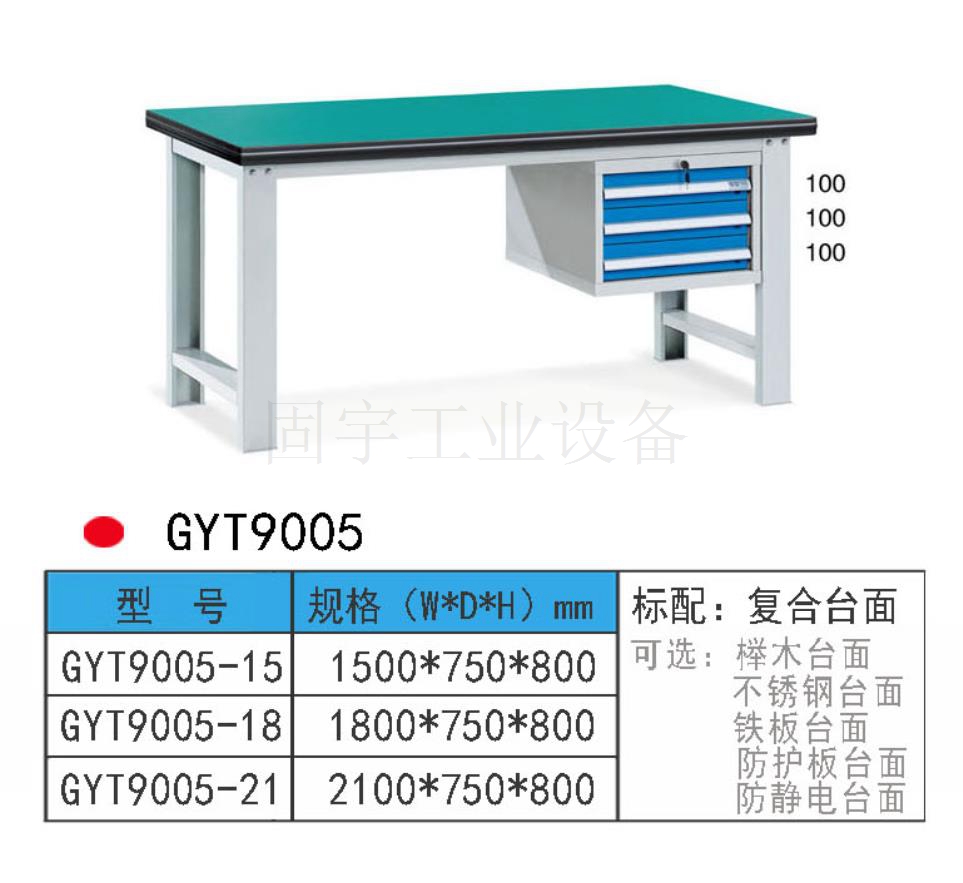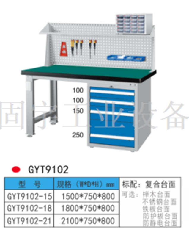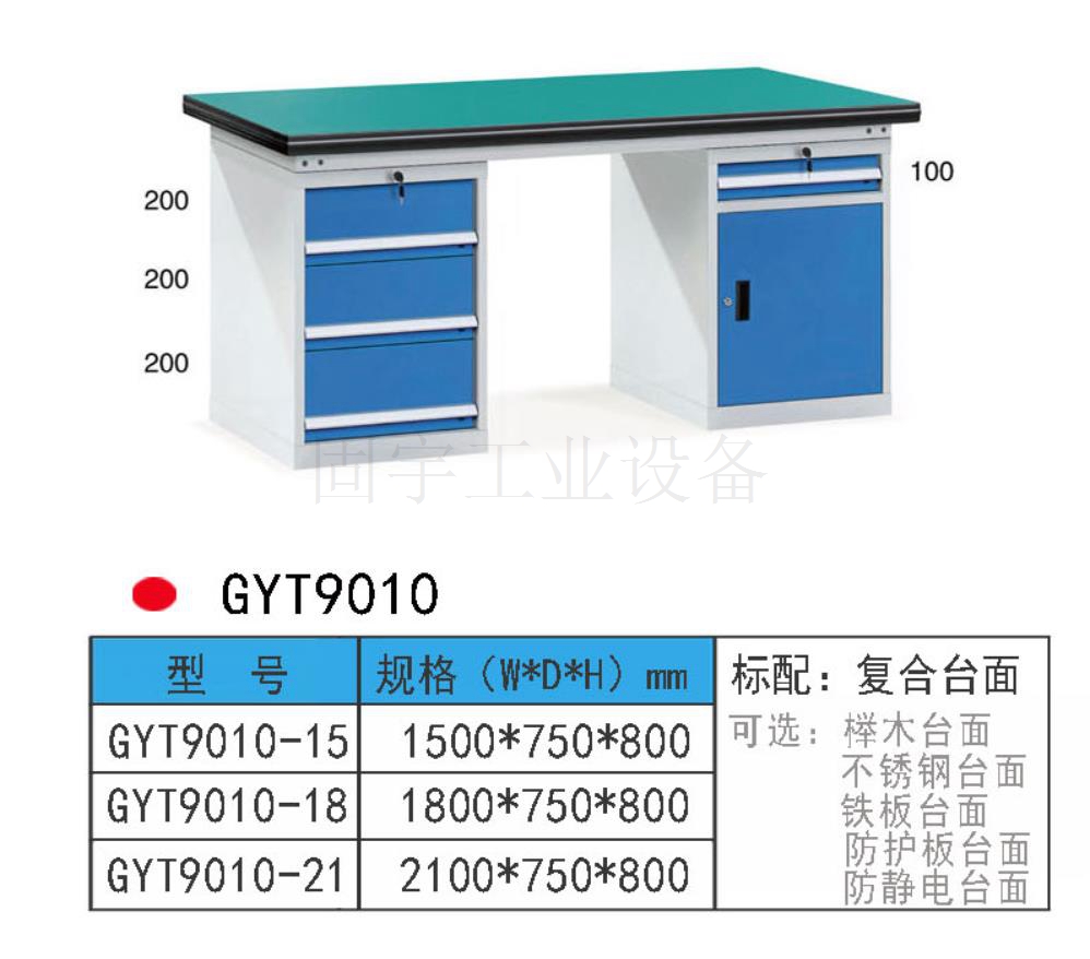 工作臺采用優質冷扎板精工制作而成,堅固的工作桌框架,牢固平穩,可使工作桌承重1000kg;多種工作桌面選擇,可配合不同使用的要求;工具吊柜(箱),側柜(箱)燈架,調節腳杯,,外形美觀;層板,抽屜質量上乘,承重大,抽屜內可根據需要任意分隔;節約空間,適用性強。 范圍 工作臺適合于模具、鉗工、檢測、維修、組裝等各種不同應用場合,具有良好的耐腐蝕性,耐臟性,抗沖擊性和承重能力強。桌面經特殊處理,具有防腐、抗沖擊力強等特點,多種桌面的選擇,可配合不同的使用要求;所配置的抽屜、柜門方便使用者存儲工具;桌角上預留電源孔,方便安裝電源插座。工作臺(桌)分為輕型(可承重300公斤),中型和重型工作臺(桌)可承重1000公斤及特制的工作臺。可根據需要靈活地配置各種吊柜、單柜、雙柜等,可加裝掛板,電器板,燈頂板、調節腳杯,輪子,擱板等桌上部件,具有多種選擇,能夠滿足各種工位的需求。 工作臺材質采用優質冷軋鋼板,表面采用靜電噴涂處理而制成,堅固的工作桌框架,牢固平穩,可使工作桌臺面均勻承重達到1000kg。桌面有多種材質組成,適用于各行業辦公場所??膳浜瞎ぞ吖?,吊柜,掛板,單開門柜使用。抽屜、承辦承重大,性能好,抽屜里可根據需求配置分隔條 工作臺分類:根據臺面的不同分為:櫸木工作臺、鋼板合成工作臺、防靜電工作臺、高分子工作臺;根據承重的不同分為:輕型工作臺、中型工作臺、承重型工作臺;根據功能的不同分為:多功能工作臺、帶吊柜工作臺等等。 臺面優勢 復合臺面特性臺面平整度高,撓曲度為0.8mm。表面2mm厚度為高分子材料,使臺面耐酸堿、耐磨、耐油。臺面采用高壓纖維板,使臺面更具有抗沖擊性。特別的圓弧桌角,不易受撞擊損壞。高強度塑膠包邊堅固、實用、不易損壞、不易脫落。櫸木桌面特性桌板使用櫸木與防水膠經加壓制造而成。表面光滑平整,美觀不易變型,耐油、耐熱、耐酸、耐堿,適合一般工廠作業與精密模具維修,儀器置放與檢測等用途。不銹鋼包面特性桌板使用高壓合成板,表面包1-2mm砂面不銹鋼板,以達美觀耐用。耐高溫、耐磨損、耐油、使用壽命長,為多功能桌板,適合一般工廠、食品業、研究室、電子廠無塵室使用。輕型工作臺可承重300kg-500KG防火板臺面特性輕巧、美觀、耐磨、防火。層壓板臺面特性工作桌面平整,變型小,強度高,抗沖擊性好。 標準顏色 產品顏色 標準的顏色可分為6種:淺藍色(RAL5015), 電腦灰(RAL7035), 機床綠(RAL6011),深藍色(RAL5017)。